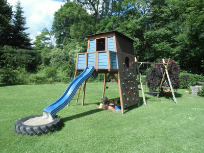 De grote tuin is beschikbaar voor gezamenlijk gebruik en is ideaal voor vakanties met kinderen. Het verzorgde huis is volledig en functioneel ingericht voor 6 personen. Een extra bed voor kleine kinderen is op aanvraag beschikbaar. Het huis heeft 3 slaapkamers, een woonkamer, twee badkamers met douche en WC en een eetkamer met zithoek.